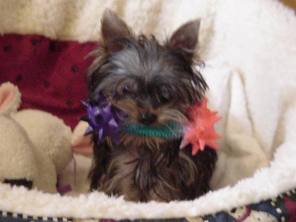Most Frequent Concern: "Can I really hide my treats from the other Yorkies in the house? Or should I try to eat the whole thing at once. Is that bath for me? and Not the Toothbrush Again! Favorite Saying: "If it is standing, I must mark it." |